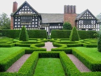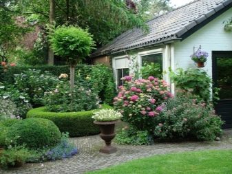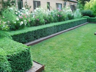 - Hedges. This is a multi-level greenery, from trees to low shrubs, which aesthetically but economically divide the space. Beautifully shaped and short-haired trees and shrubs, as well as flowering plants with a height of 1 meter (sunflowers, dahlias, golden balls, thorns and others).