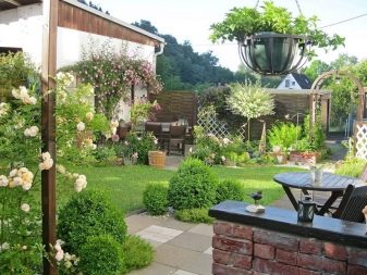 - English style. It combines geometry and naturalness, bright colors, interesting plants, arches, ponds and intricate wickets. Preference is given to climbers and perennial plants.