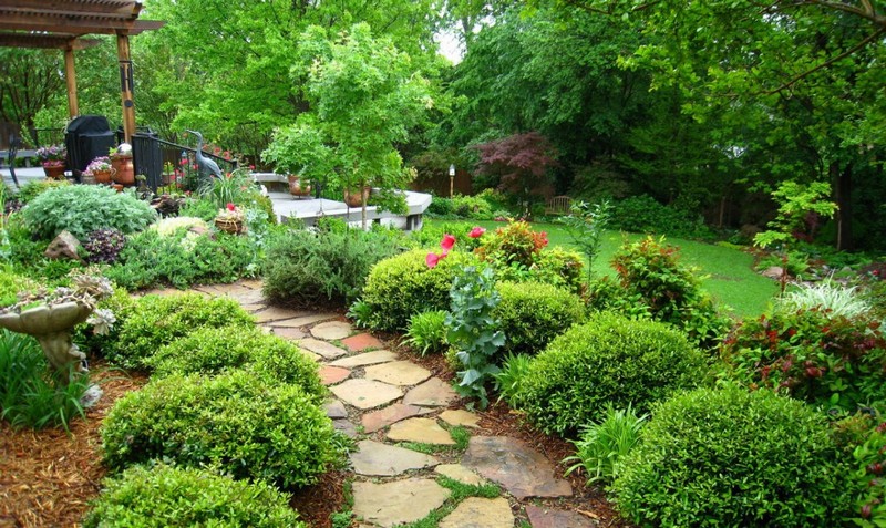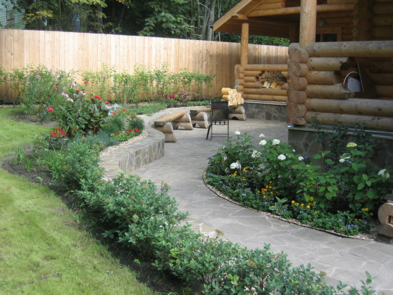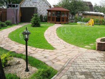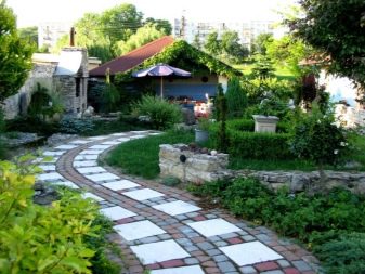 - Think over the slope and direction of the tracks on the site.It should not be too large so that the ascent does not turn into a test, and too gentle so that it does not take much time. The shape of the tracks, their size, color and texture will help to adjust and zone the space of the site.