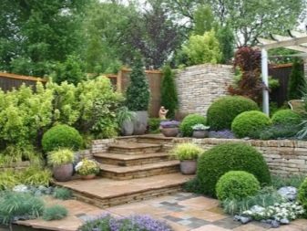 - Height differences. This is an artificial deepening or elevation of certain areas of land on which cascading green and flowering compositions are created. In the same way, you can mask the natural topography of the site.