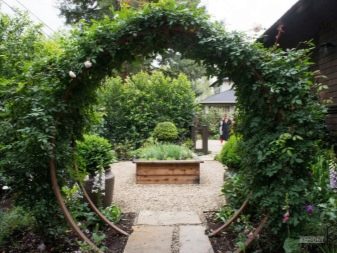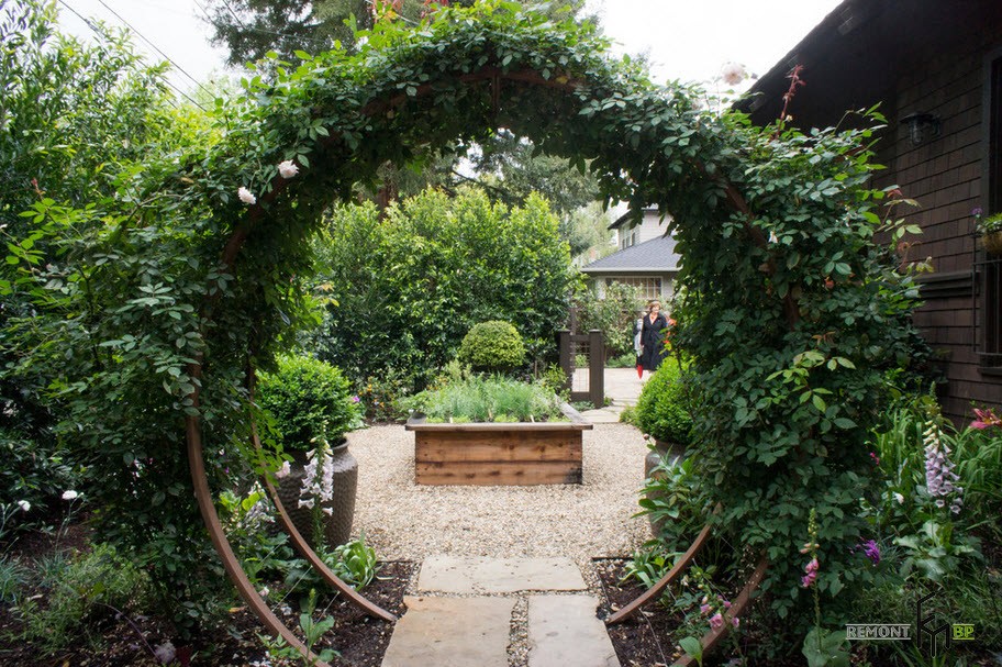 - Arches and Trellis. They serve not only as an original decoration and help to mark the boundaries of the zones, but also create shady areas and protect from the wind. For arches are used climbing and creeping plants - clematis, decorative beans, nasturtiums, decorative grapes, lemongrass.