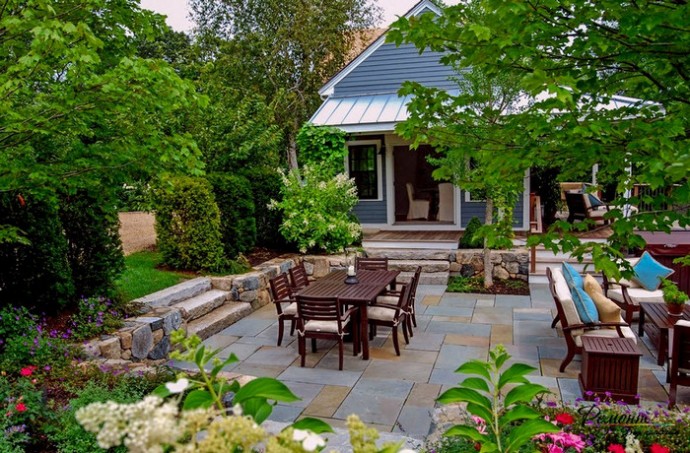 - Provence style. It combines the romance of French gardens, American country, the image of a garden from the Italian hinterland and other "provincial" motifs. Natural materials, textile accessories, garden figures, plenty of small flowers are welcome.