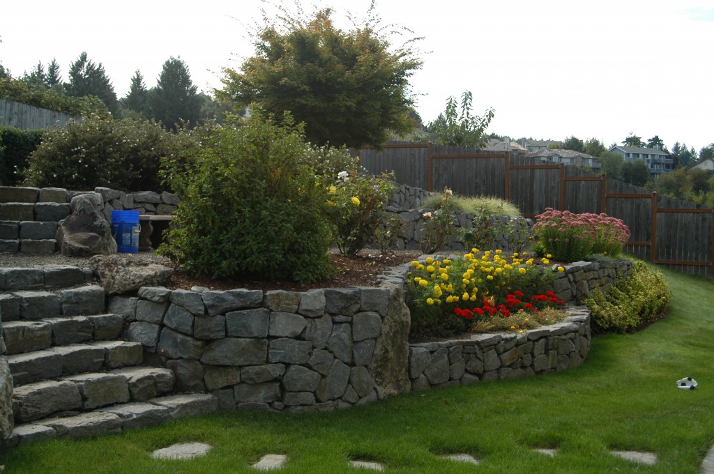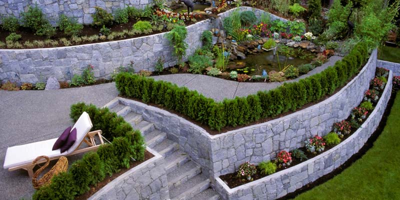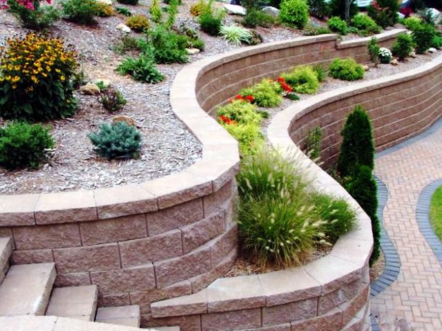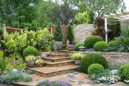 When planning and design, it is important to take into account all the features of the uneven area and try to disguise height differences as much as possible.