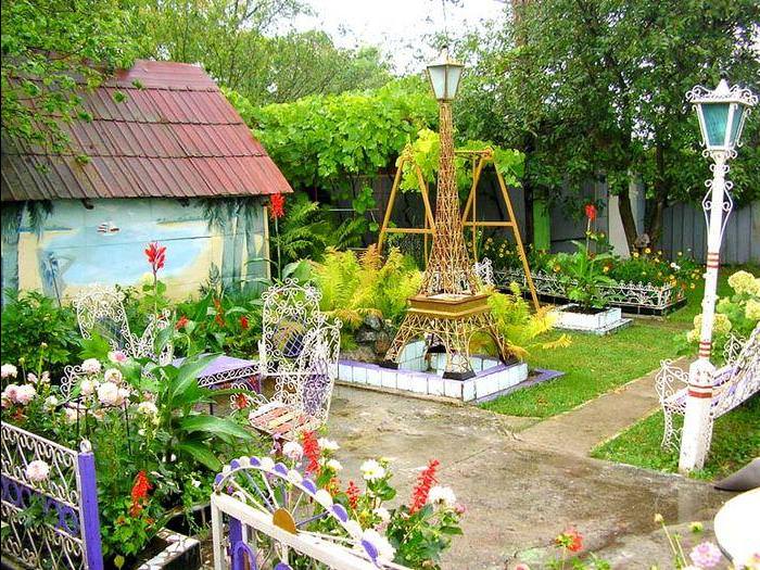 Decorating the site includes many cozy little things that give it individuality - from decorating the earth with the help of an orchard and flower beds to interesting furniture in the recreation area. The choice of decor is a purely individual matter, but there are several universal solutions that will help give character to the dacha: