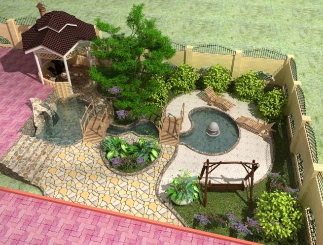 The third way is to use all the possibilities of landscape design for the visual transformation of the site. This will not increase the useful area, but from the side its shape will look more correct, and the composition as a whole will be more harmonious.