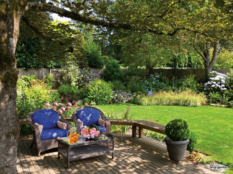 Also, landscape designers recommend using one trick: to organize green spaces so that the site is not fully visible. Help trees, hedges and shrubs.