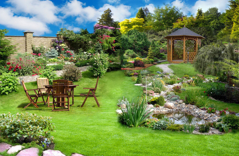- Traditional oriental gardens. They are dominated by simplicity, beauty and supreme harmony of Chinese and Japanese gardens. Used greens, stone, ponds, natural wood.