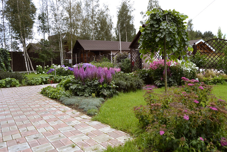 - The presence of a central axial line that divides the site strictly in half (wide road, alley). The tracks he departs from it are strictly correct, straight, so you should not use this technique in small areas. They will “eat” the space;