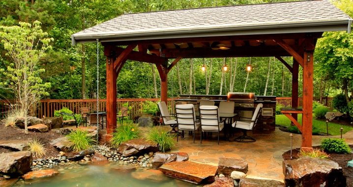- Open. This is any territory not equipped with a roof. It can be equipped with braziers, a bonfire, barbecue grills, sitting places (chairs, benches), a table.