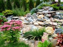 - Japanese style design of the garden area is permeated with symbolism. The main elements of the decor in such a garden will be large boulders, a pond, a veranda or terrace, which offers a beautiful view of the beauty of the local landscape.