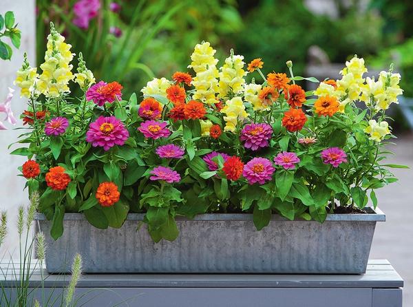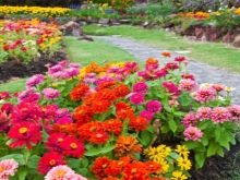 Particularly beautiful is the combination of several varieties of zinnia in one flowerbed.