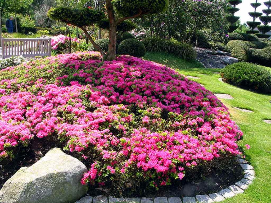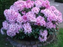 Rhododendron. Belongs to evergreen plants, which are often used in the landscape design of country houses. The flowering period is in June, but its dark green foliage will noticeably revive the exterior of the site in the autumn-winter period.
