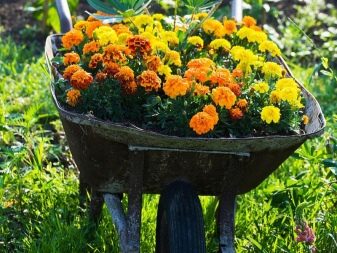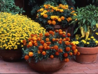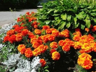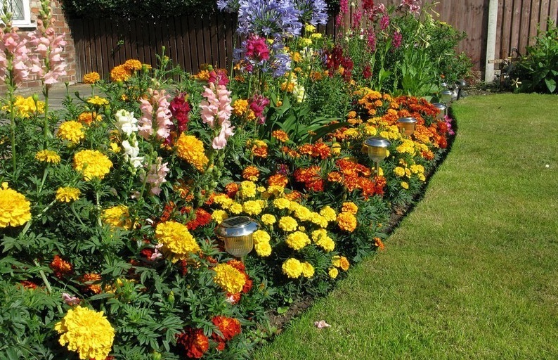 Marigolds (taghetis) - pets gardeners. There are about 50 annual and perennial varieties of this plant. An incredible solar range of marigolds includes rich sunny yellow, reddish-brown, two-colored and even double flowers.