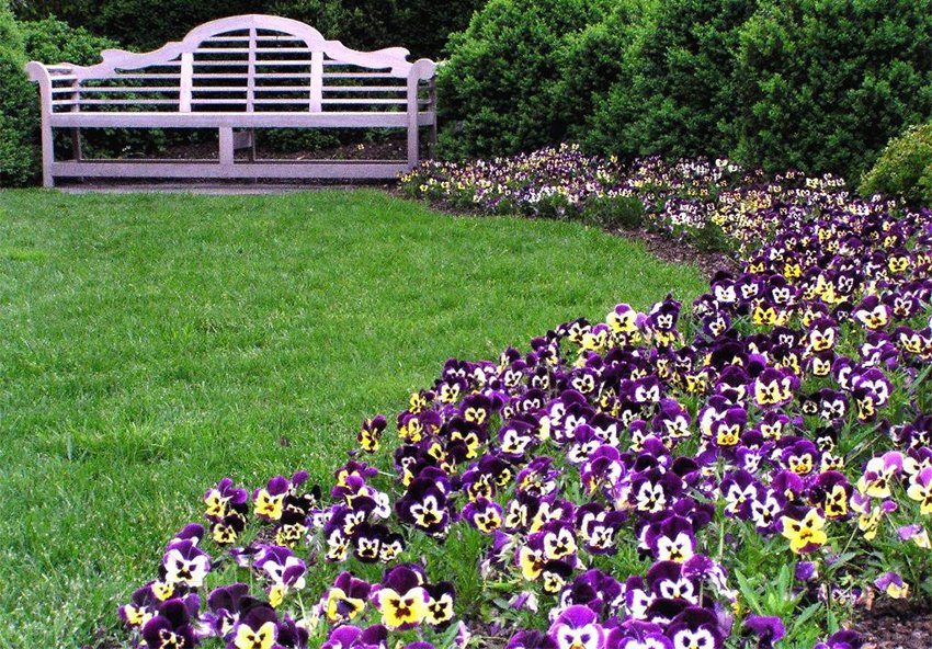 Pansies (or Vitrokka violet, viola) - a short-growing plant (15-30 cm in height), resembling a violet.Often found in urban flowerbeds, private plots, balconies, outdoor flowerpots. It grows well in the shade, but in this case the flowering will not be too abundant.. A large number of viola varieties have been developed - white, yellow, purple, blue, red and even black. The color scheme of buds is diverse, so that the beds of pansies are bright and interesting.