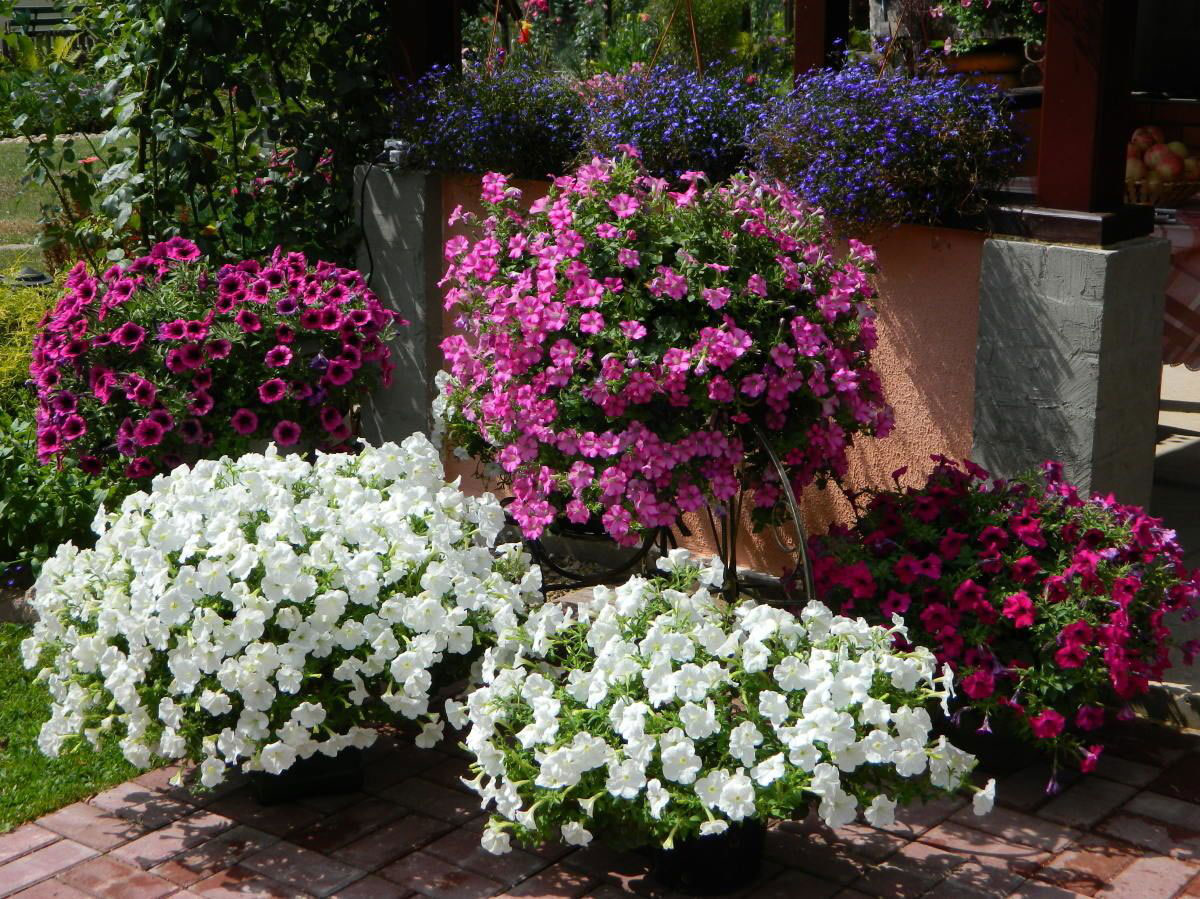 There are about 20 species of this flower, there are perennial and annual species. Depending on the variety, petunias may have an erect or creeping stem. In any case, the length of the stem is no more than 10 cm. These flowers are a great opportunity to dilute green park lawns, front gardens, lawns with bright colors. Look great in hanging pots, can become a real decoration of the garden plot.