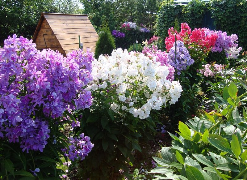 Late species include high shrub phlox with bright juicy flowers - from pale pink to purple. Striped varieties of phlox look especially beautiful on a flowerbed.