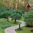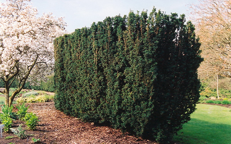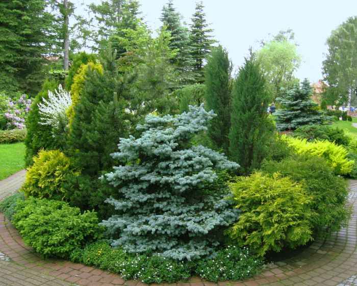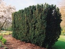 - Ephedra - the most popular type of landscape vegetation.They do not require special care and are green at any time of the year. Pine loves sandstone, spruce can grow on swampy soils, these features should be taken into account for planting them in different areas. Yew does not require trimming and forms low hedges well.