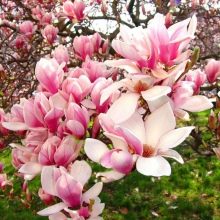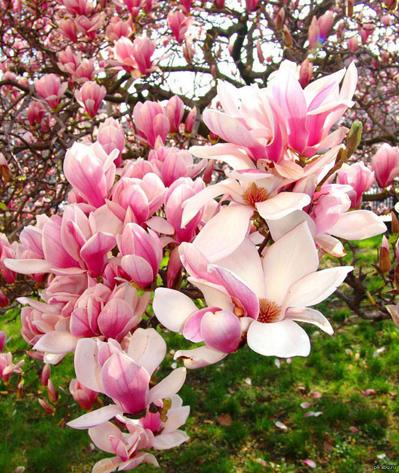 - Magnolia. During flowering this tree you can admire the clock. Only on it you can see delicate pink flowers, the size of a children's ball.