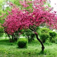 - Paradise apple tree. Ornamental undersized tree, especially beautiful weeping look. During fruiting, the plant is covered with wonderful multicolored fruits that look attractive and taste good.
