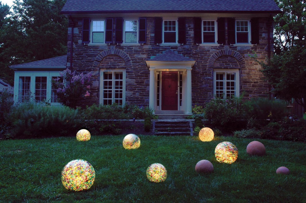 - Lighting can go on top, for example, on pillars or the facade of a building and on the bottom,being directly on the ground (in the form of balls, cones, hemispheres).