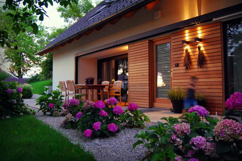 - The facade decor of the cottage must support general plot styleotherwise, all efforts to create a harmonious garden will be in vain.