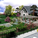 It is always romantic and natural to look at a 15 hectare plot in landscape style on a slope. You can interesting to embody artistic ideas for the territory on a hill. It is about mastery of successful beating up of winding lines, relief changes. Since the landscape design eliminates the symmetry and excess geometrical decoration, in the general figure will look original ravines, hillocks.