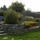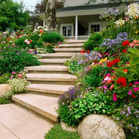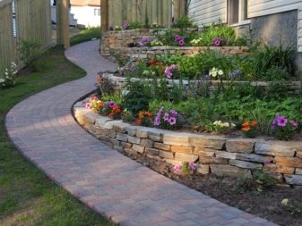 Beautifully look flower beds on the slope. They spread with natural carpet and attract the attention of visitors to a country house.