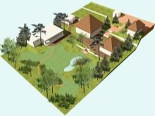 Proportions need to withstand the following. A tenth of the total area is a house, another 15% are other buildings, almost the rest of the territory (up to 70% of the plot) falls on a garden and a vegetable garden. The remaining 5% - recreation areas, lawns. If you need more such places, you will have to sacrifice partly a garden or, say, a bath. Start filling the plot to be from home. From it should be convenient to get to any other object in the suburban area.