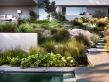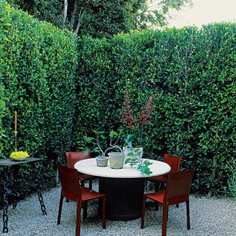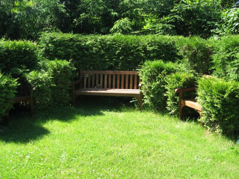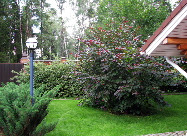 Today in the trend of reservoirs with low lanterns. Well-established high green hedges, which can make the lost corner of a non-standard plot a pleasant cool place for secluded relaxation.