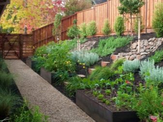 Borders can be large shrubs, arches twined with flowers and greenery, high beds (additional fence should not be fenced).