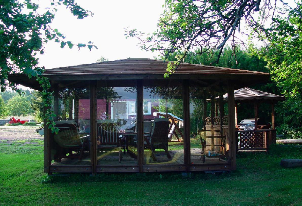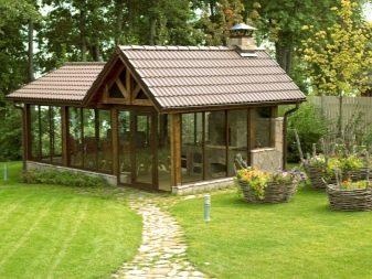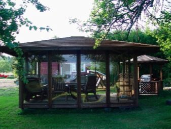 Recently, the fashion for glazed capital arbors has appeared. Fireplaces are installed in them and they rest all year round, admiring flowerbeds in summer and in evergreen plantings in winter.