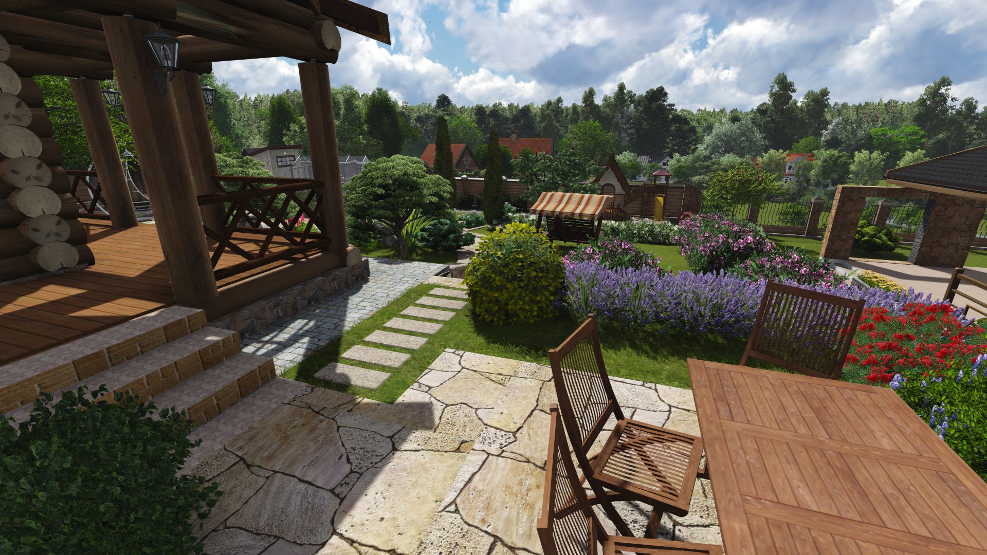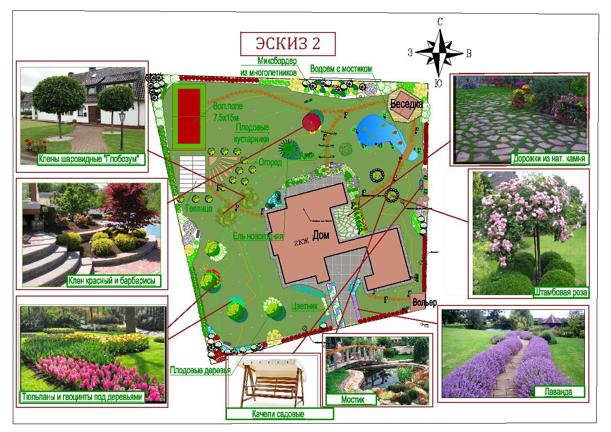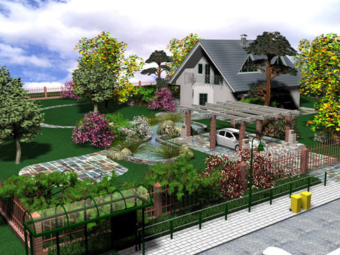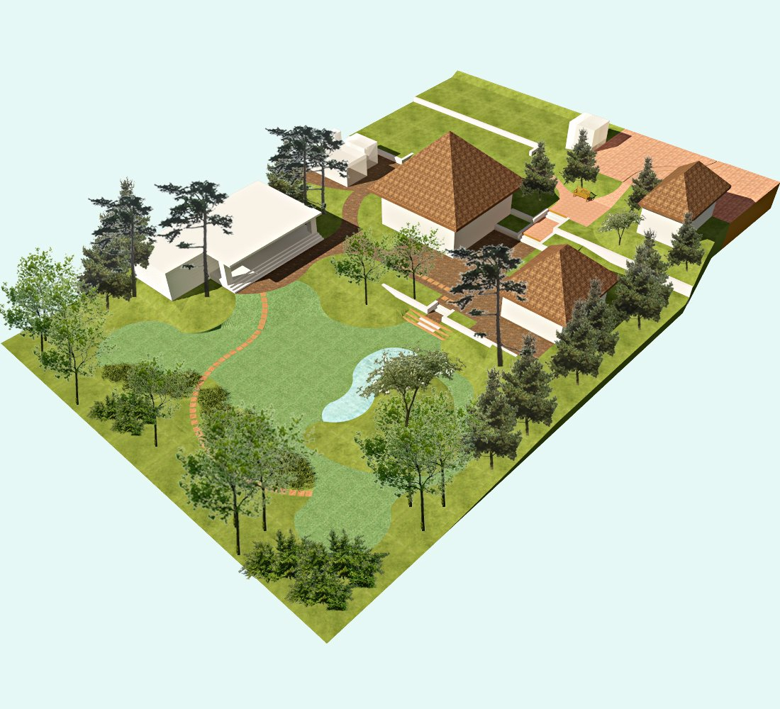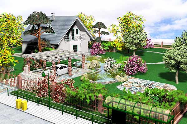 There is a set of rules in the design. The facade of the house should look to the south: so around the house you can achieve maximum sun throughout the day. Your landscape design must comply with the logic of the buildings that will be present at the site.