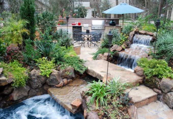 Since you are the owner of a spacious land plot of 15 acres, you can wipe out the use of different styles in landscape design. Plant more fruit trees, cover lawns, flower beds, green walls, lanterns, waterfalls, and other decorative items. Zoning is easier for owners of classic square or rectangular areas. In the middle of the house, and all other zones - already only the imagination of the owners and the observance of the rules of growing certain crops.