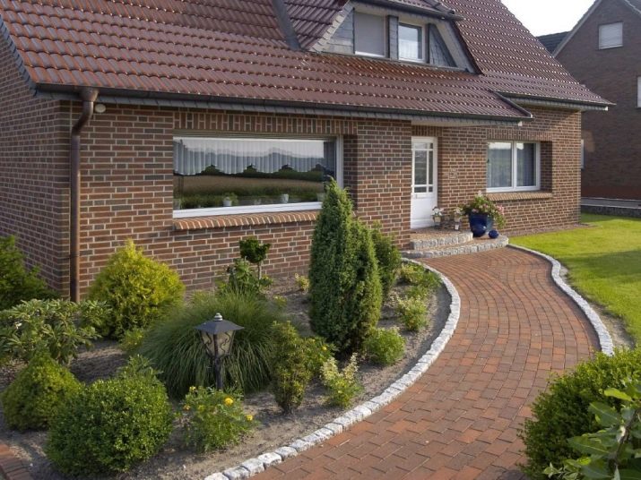 - Flower beds is a place under the windows.The far fence is decorated with conifers and shade-loving plants (bathing, fern).