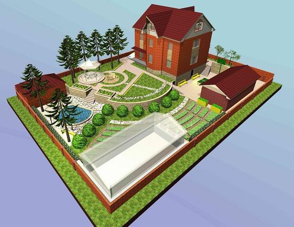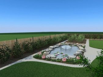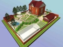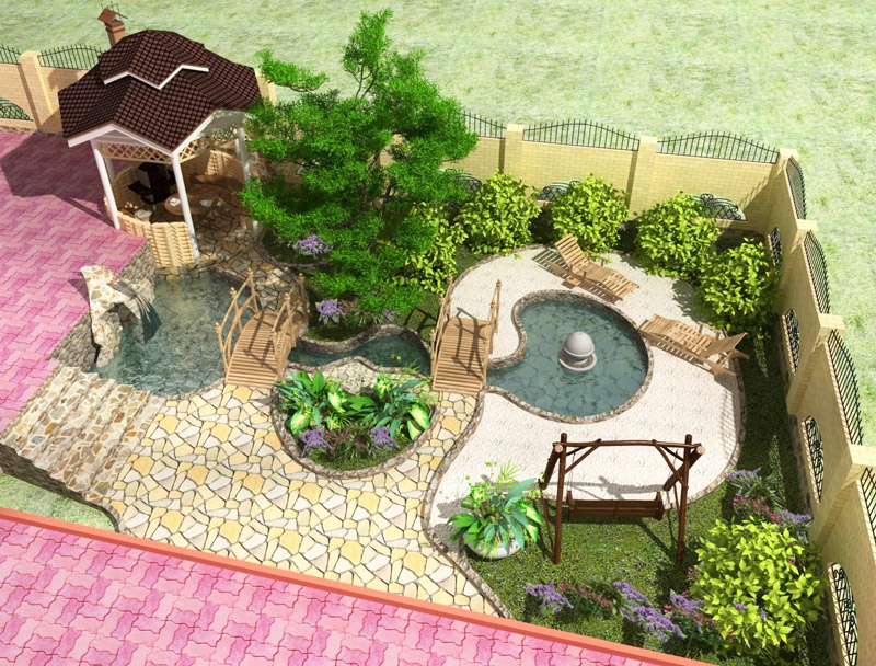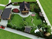 In placing all the elements of the estate, such as a reservoir, bath, garden, will help the basic techniques of landscape design, which will accommodate everything desired, even in such a small area.