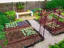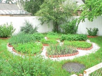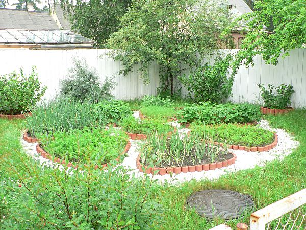 The radial layout option introduces its own characteristics, it is more difficult to lay communications, there is a greater consumption of material, but this is compensated for by the decorative effect and the illusion of the length of the route along the semicircular path. The beds, designed in the form of sectors, look more like a flowerbed, and not like a garden.