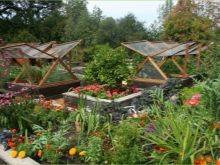 In the garden decor of traditional gardens, decorated in rural style, a large place is occupied by objects of peasant life. These beds are made of wood, old wheels, clay shards and other utensils.