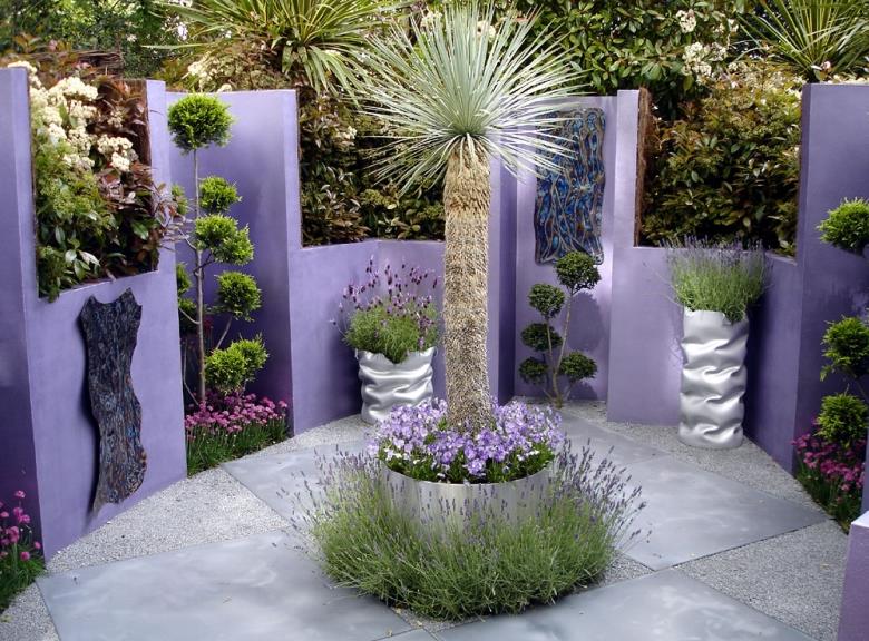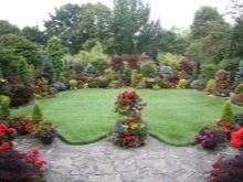 Regular planning involves arranging flowers in flowerbeds or rabatki, in which bright annual and perennial flowers are planted. Greater popularity gained mixborders. Flower gardens, consisting not only of flowers, but also herbaceous plants and shrubs with decorative foliage. The palm is here assigned to evergreen conifers.Barberry tunberg, hosts, ferns.