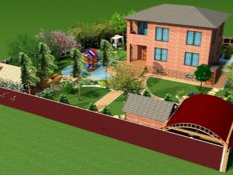 The area of outbuildings is located next to the courtyard, around it or attributed to the interior of the site and decorated with plants. Here it is worth considering that the area of 20x30 meters should not be completely occupied by buildings, unless a decision has been made to abandon farming. There are options where a sauna, a garage, a shed, a covered barbecue pavilion are located around the perimeter of the plot, and a cozy, stylish playground is set up in the middle.