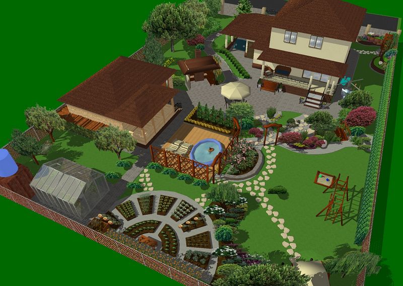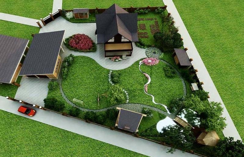 There are several basic layouts on which the features of this area are then superimposed, and a detalization is carried out.. It is recommended to cut to scale the plan of the house and gazebo, bath or shed, pond or pool and beds. They are laid out on the plan, observing building codes, and moving relative to each other until they achieve the desired result.