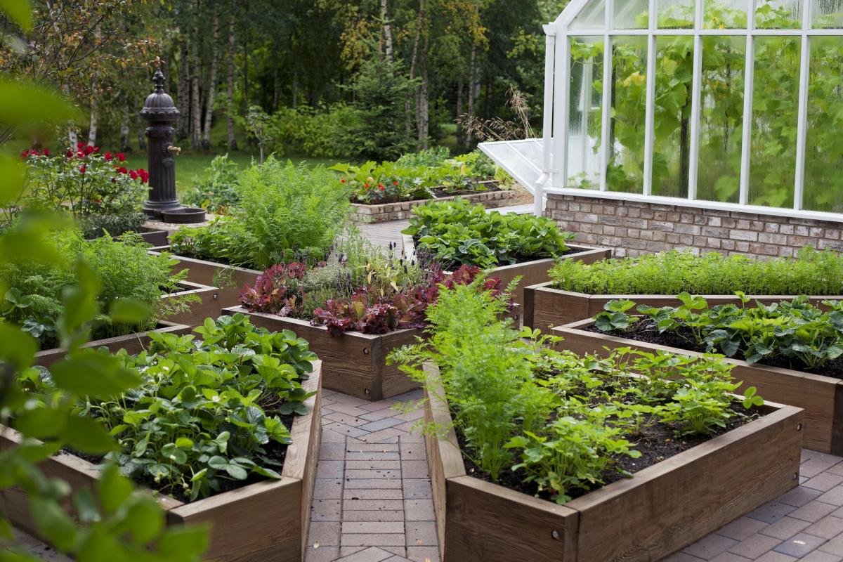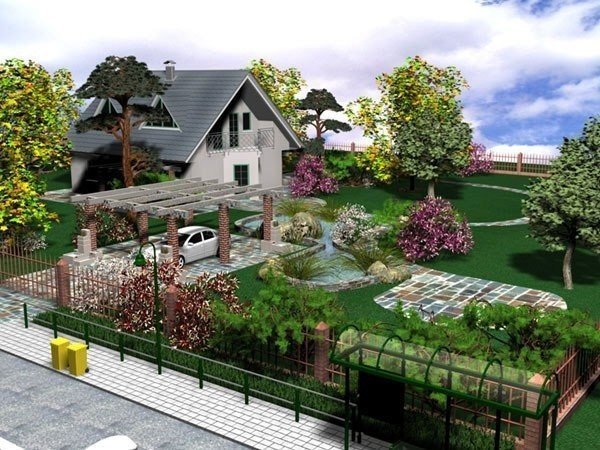 The garden can be hidden behind the trees in the far part of the garden, or you can decorate it in decorative flowerbeds and decorate the front area.