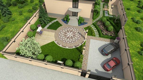 The front part of the plot is allotted to the house and the entrance zone; you should not have parking in the depth of the plot, as this will reduce the useful area of greenery.