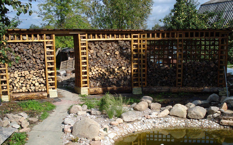 In a limited area of 600 square meters, the principle of combination is useful. This is a way to save space. Instead of two separate buildings, a bathhouse and a shed or a barn and a poultry house are erecting one with an internal partition in order to delimit the functional use of each part of the room for its intended purpose. Drovyanik can be combined with the side wall of the bath, placed under the stairs, the woodpile often becomes the original part of the fence.