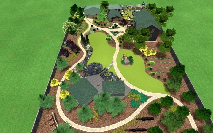 Landscape design suburban area in 6 acres begins with the study of terrain features. The relief is examined, the need for excavation or bedding of soil for its leveling, drainage of wetlands is revealed.In some cases, the owners transform the natural hills or lowlands from disadvantages into dignity - they arrange the terraces, slightly improving the elevation differences, and the wetlands or hollows are allocated to an artificial reservoir.