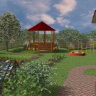 In order to visualize the project of the estate territory, it is desirable to draw a sketch on paper. Do not forget about flower beds and paths. The style should be the same for all buildings.