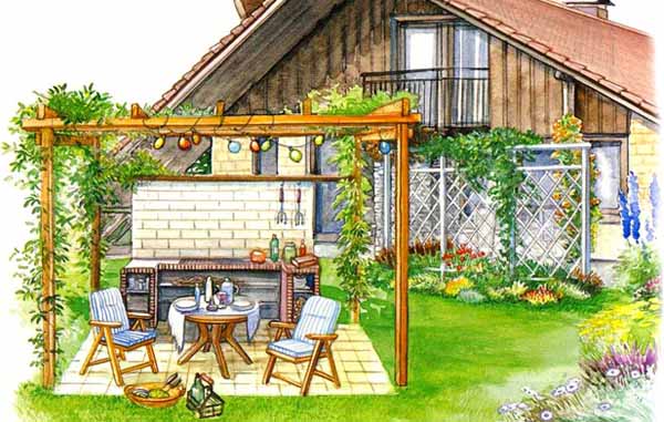 Before starting work it is important to find out what exactly you would like to see at your summer cottage. Since all people are different, their tastes and requirements are different. Some people just want a comfortable and cozy home to rest when there is time, and the area that remains is simply sown with a lawn, they arrange recreation areas, build a bath or fountain. The latter prefer different types of planting, grow ornamental and fruit plants, trees. For the third it is important to combine the first and second options.
