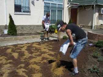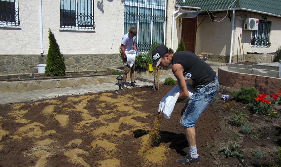 The surface must be cleaned of old grass, clean the roots, stones, debris. The soil must be carefully leveled. For the best survival of vegetation in the ground, you can make sand, black soil or, as an example, humus. Fertile soil layer can not be less than 10 cm.