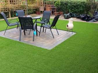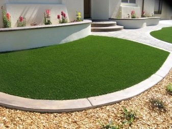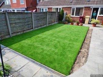 An alternative to rolled natural lawn are synthetic lawns.. They are made of dense pile, which looks like grass. Of course, they are not so spectacular, but they adequately occupy their niche in the market.