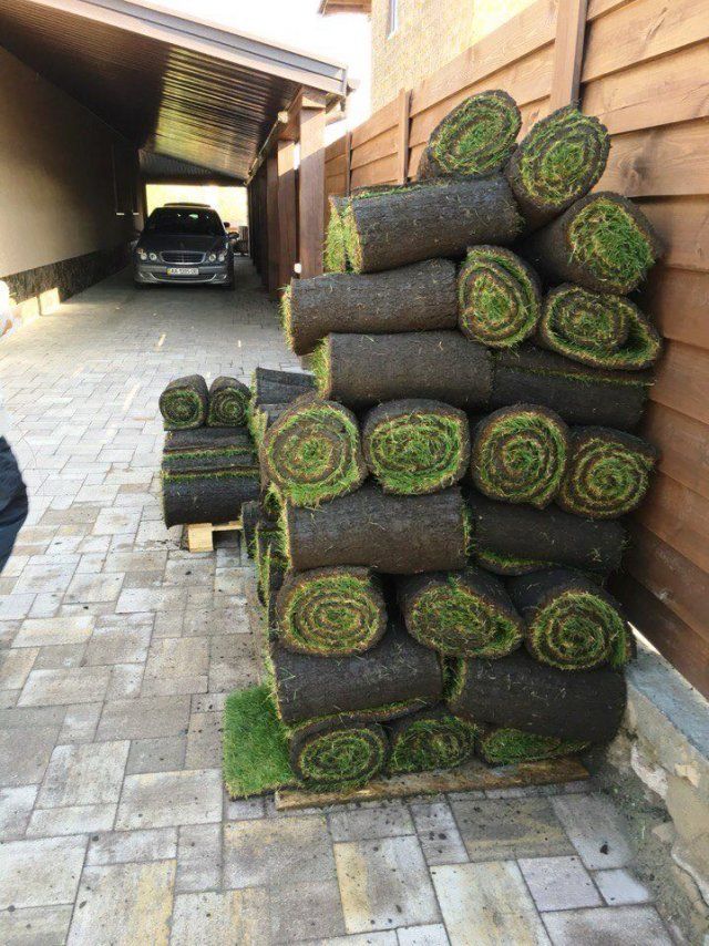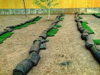 The technology of growing lawn turf implies its transfer within 24 hours to the site where drainage and slope are made, a fertile layer of earth has been prepared.