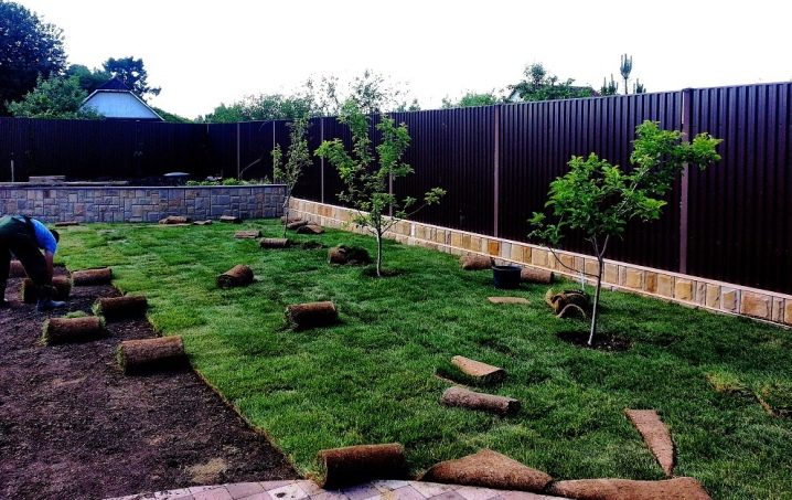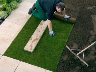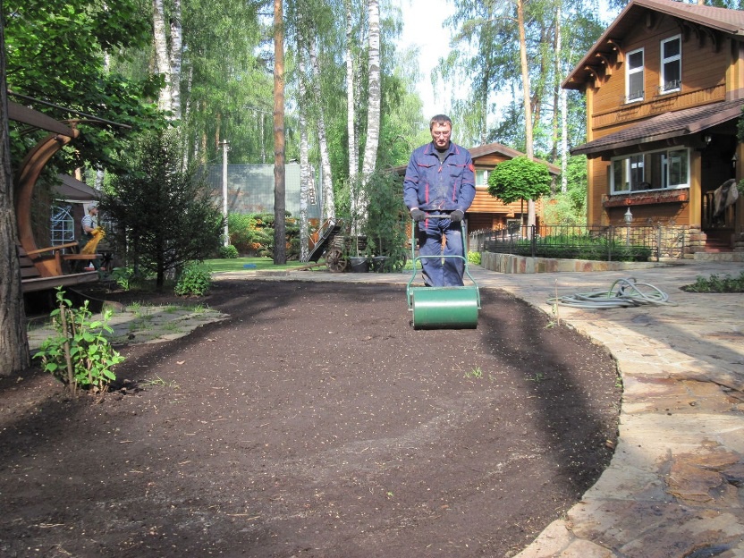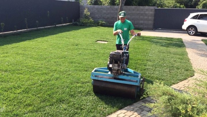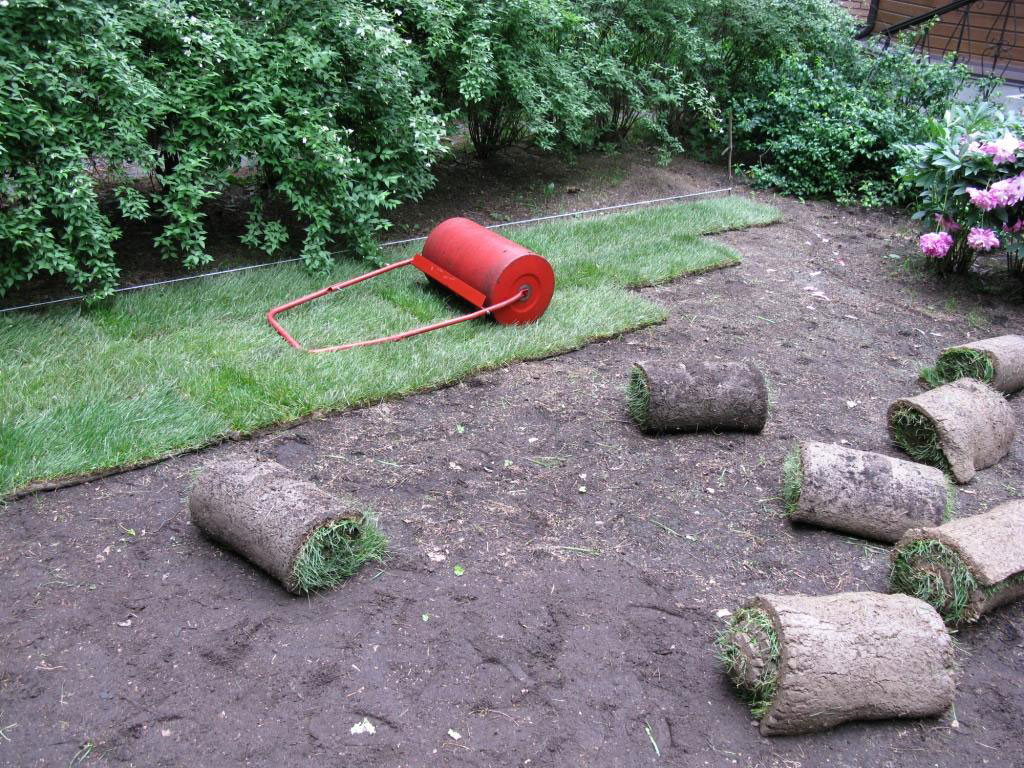 On the laid lawn pass a special lawn skating rink. If you ignore this rule, air cavities form under the lawn, and this will make it difficult to acclimatize the lawn, some areas may not settle down at all.